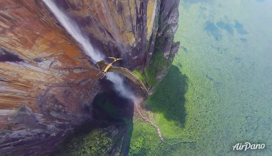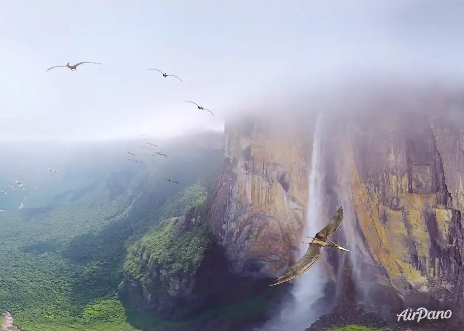 Millions of years ago, the Earth was young and its landscape was just forming: continents were joining and breaking up, ice caps were retreating, creating new landforms. Eventually, the Guiana Highlands - undulating plains with flat, as if cut tops - emerged on the territory of modern South America. When a river reaches the edge of such an elevation, a powerful stream falls off the cliff. This is how the famous Angel Falls in Venezuela appeared. Falling from a height of 800 meters, the water does not reach the ground and scatters into tiny drops, turning into a mist visible for several kilometers. The height of Angel Falls is 979 meters, making it the highest waterfall on the planet. It is located in the jungle of the Canaima National Park, where there are almost no roads. Today you have the opportunity not only to enjoy the magnificent view of this natural monument, but also to imagine what it looked like millions of years ago, when there were no humans here and the picturesque scenery could be observed by prehistoric animals and birds such as pterodactyls.